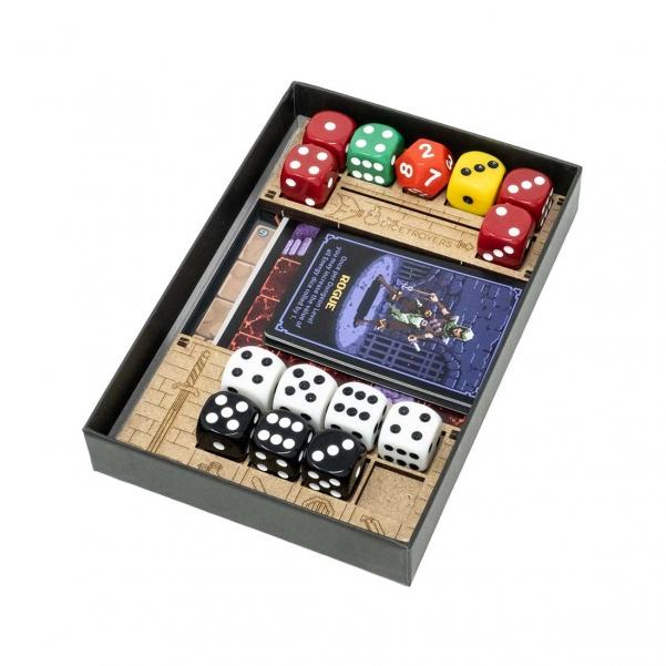Una singola carta racchiude un'intera avventura sotterranea dove tu sei l'eroe chiamato a conquistare lo Scettro di M'Guf-yn. One Card Dungeon trasforma il classico dungeon crawl in un'esperienza compatta ma ricca di sfide strategiche, dove ogni dado rappresenta la vita dei tuoi nemici e la tua forza vitale in un duello all'ultimo sangue attraverso dodici livelli di crescente difficoltà.
